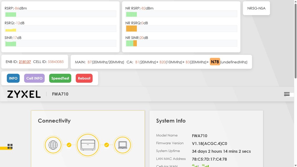 Ho avuto un attimo da bacillare, perché non mi trovava il wifi in accensione e quindi non sono riuscito a fare il puntamento guidato, dall'app, della cpe (nemmeno con un reset), ma vedendo la bts l'ho posizionata a vista. Poi ho risolto collegandomi direttamente via cavo e modificando i parametri, anche se la cpe non sono andato a riposizionarla.