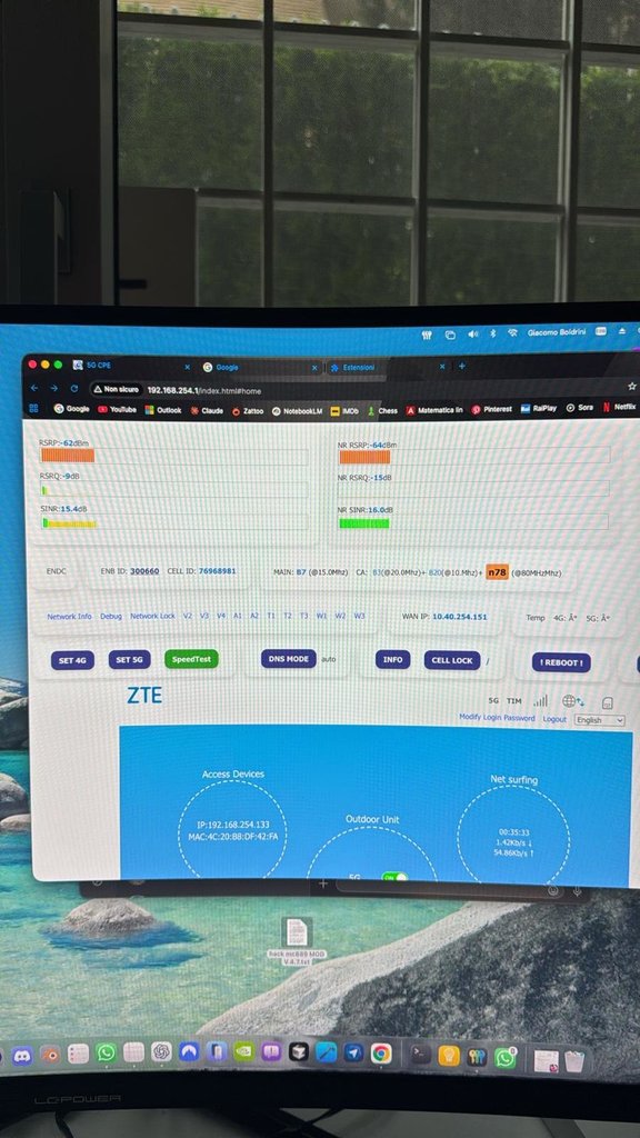 Ho recentemente acquistato un Modem ZTE MC889a Pro e l'ho installato sul tetto del palazzo, fin qui tutto normale.