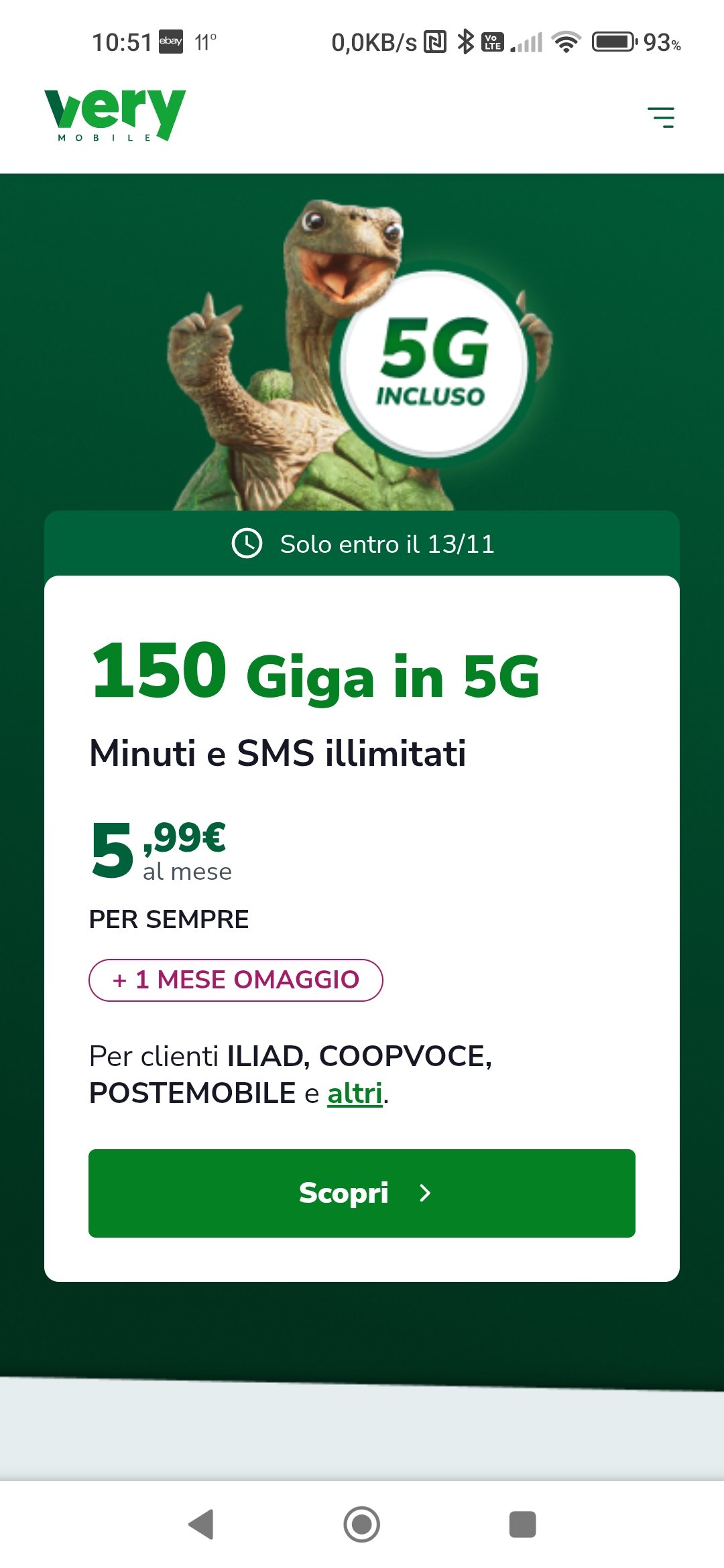 faland1266 Vendra01 Sarà scaduta... Era stata prorogata almeno 3 volte... Attualmente attiva vedo la 150 giga con 5G full speed a 5.99.
