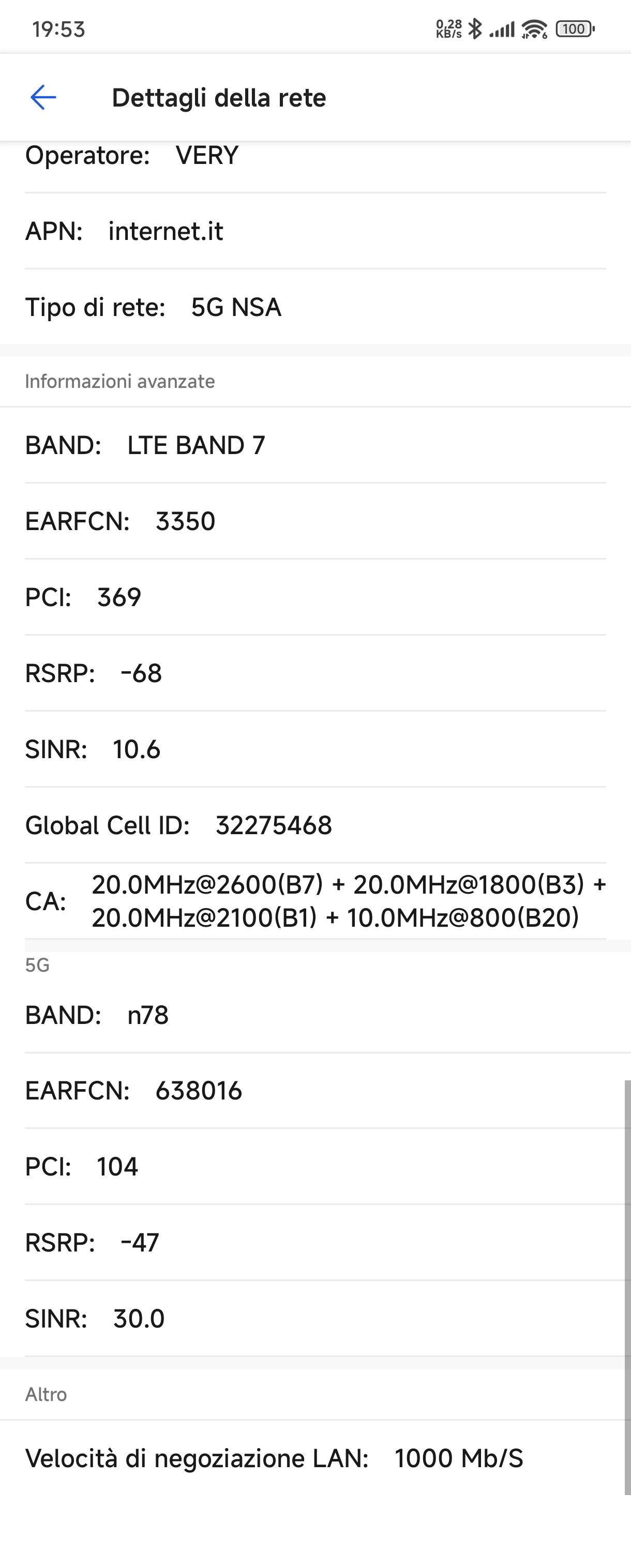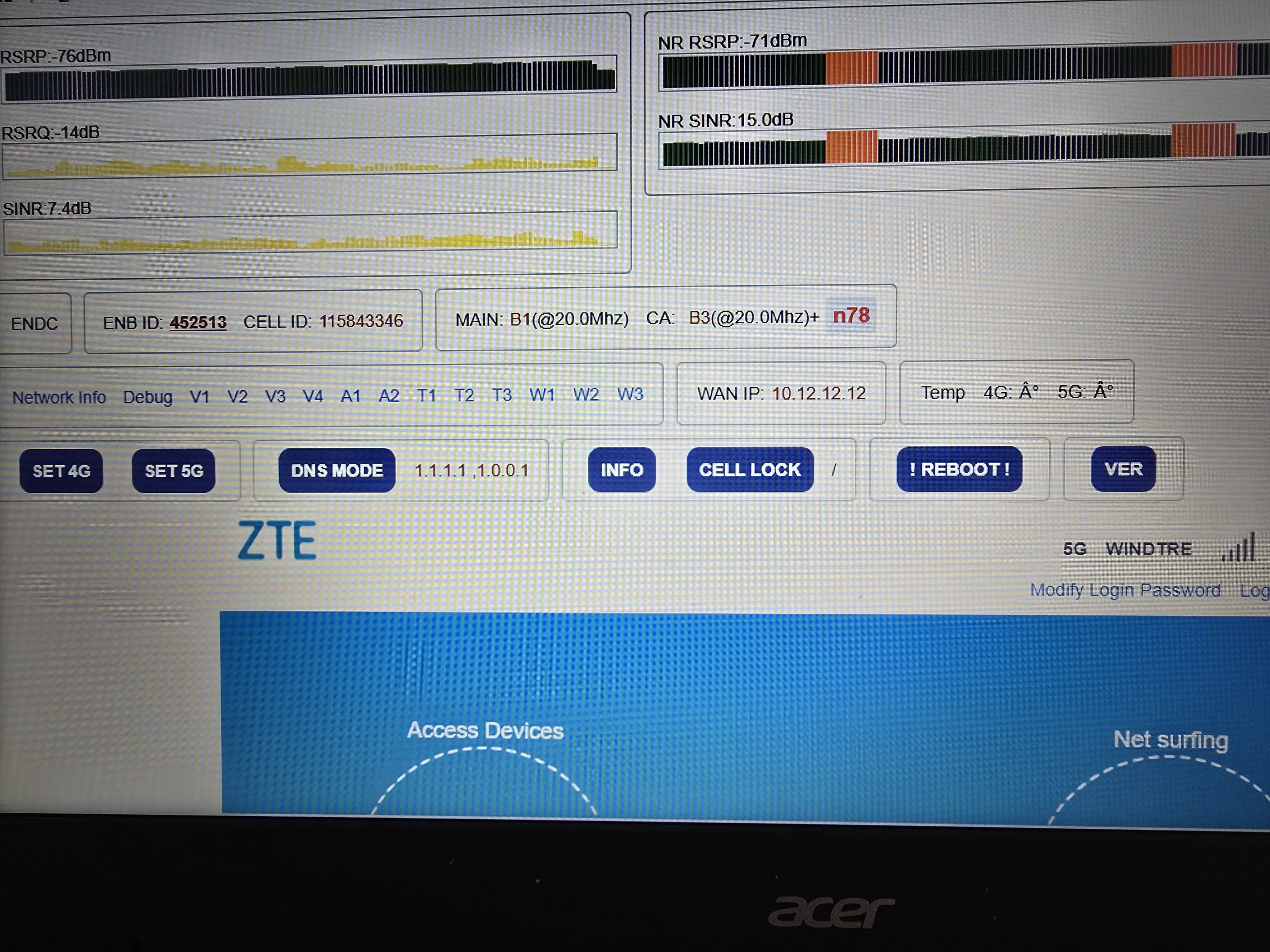 Ho acquistato un modem ZTE MC889 e lo sto utilizzando con una scheda WindTre 5G. Sembrerebbe tutto impostato correttamente e, usando "hack mio nonno", vedo che aggrega più bande, inclusa la N78