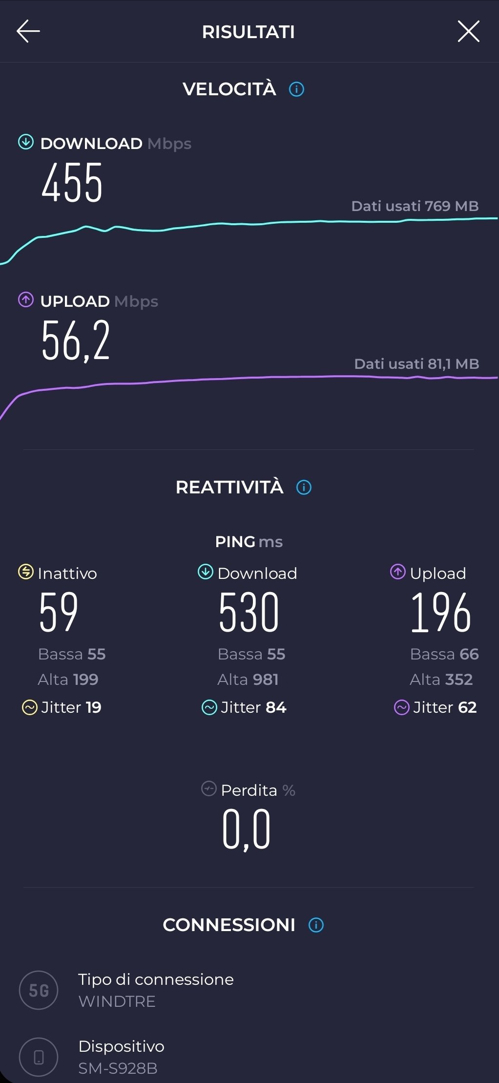 premetto che ho provato direttamente il cavo lan originale del 889 collegato al pc e anche collegato al modem con porte gigabit il risultato e pessimo (oscilla dai 70mb/90 mb) rispetto allo Smartphone che va dai 400mb/500mb.