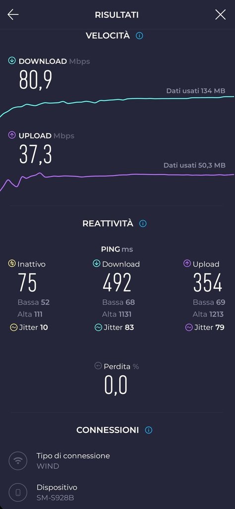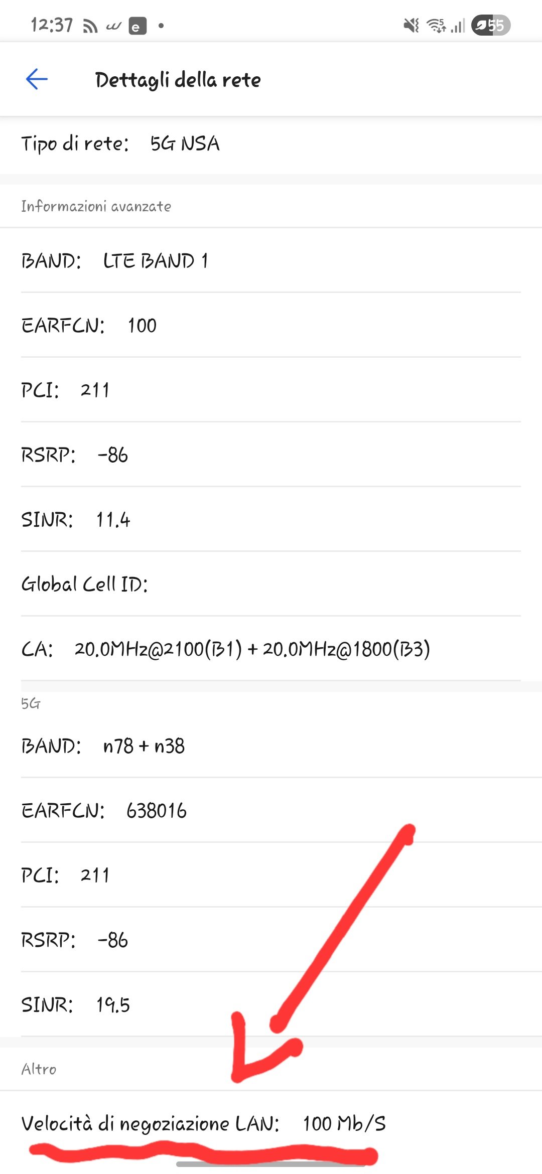 Nonostante ciò, lo speed test non supera mai i 90 Mb provo con lo Smartphone e oscilla dai 400Mb/500Mb naturalmente collegata alla stessa bts con la stessa sim, la bts dista circa 200mt linea area a vista.