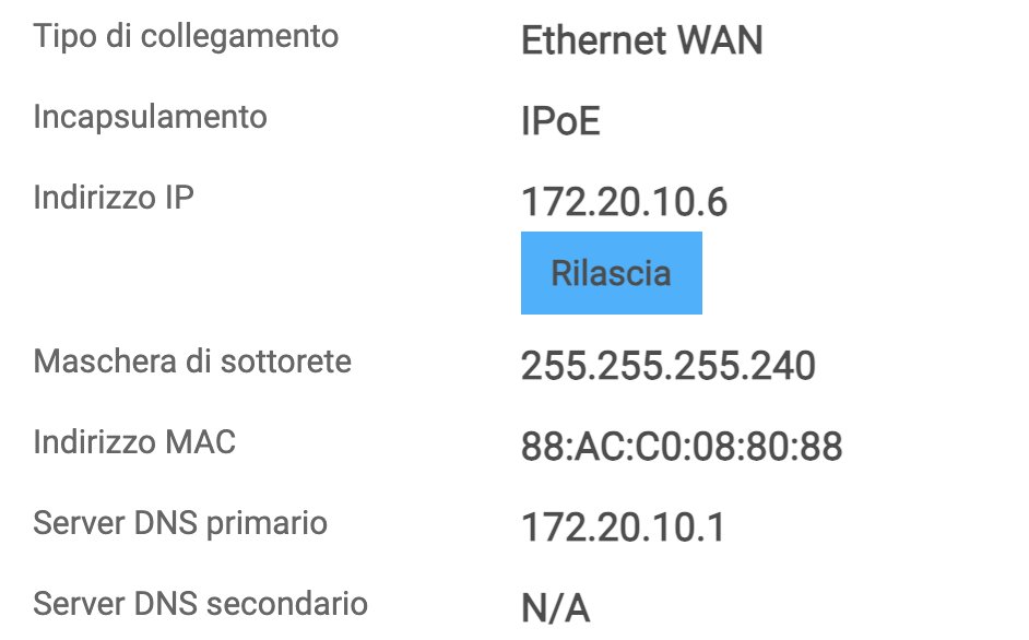 Dal menu di diagnostica del router riesco a fare ping a google.it. La spia “internet” diventa verde e sembra tutto ok, tranne che dalla rete locale 192.168.1.x non riesco a uscire su internet: qualunque dispositivo collego al router riesce a raggiungere il gateway predefinito, ma non oltre.