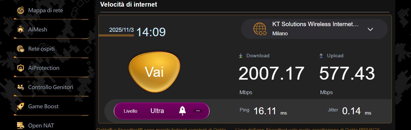 WIFI 6 2x2 con supporto a max max 80Mhz sulla 5Ghz, il link radio massimo che si può fare è di 1200Mbps che si aggira intorno ai 800/900Mbps.