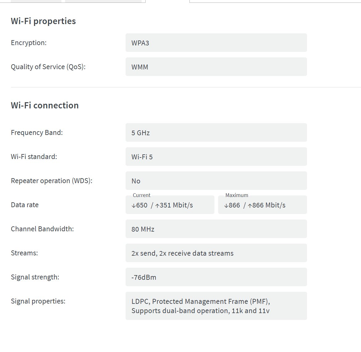 Anch'esso WIFI 5 2x2 con supporto a max max 80Mhz sulla 5Ghz, il link radio massimo che si può fare è di 866Mbps che si aggira intorno ai 500/550Mbps massimi in download.