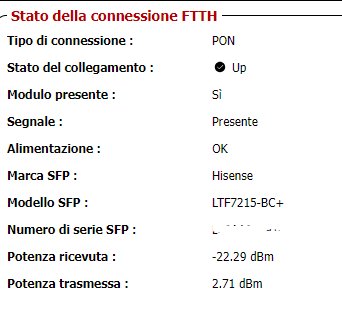 L'unica cosa sospetta è che se vado su "stato iliadbox" e poi "stato internet", sotto la voce "stato della connesione FTTH", lo stato del collegamento risulta down. Ma non ho trovato alcuna informazione su cosa significhi questa cosa.