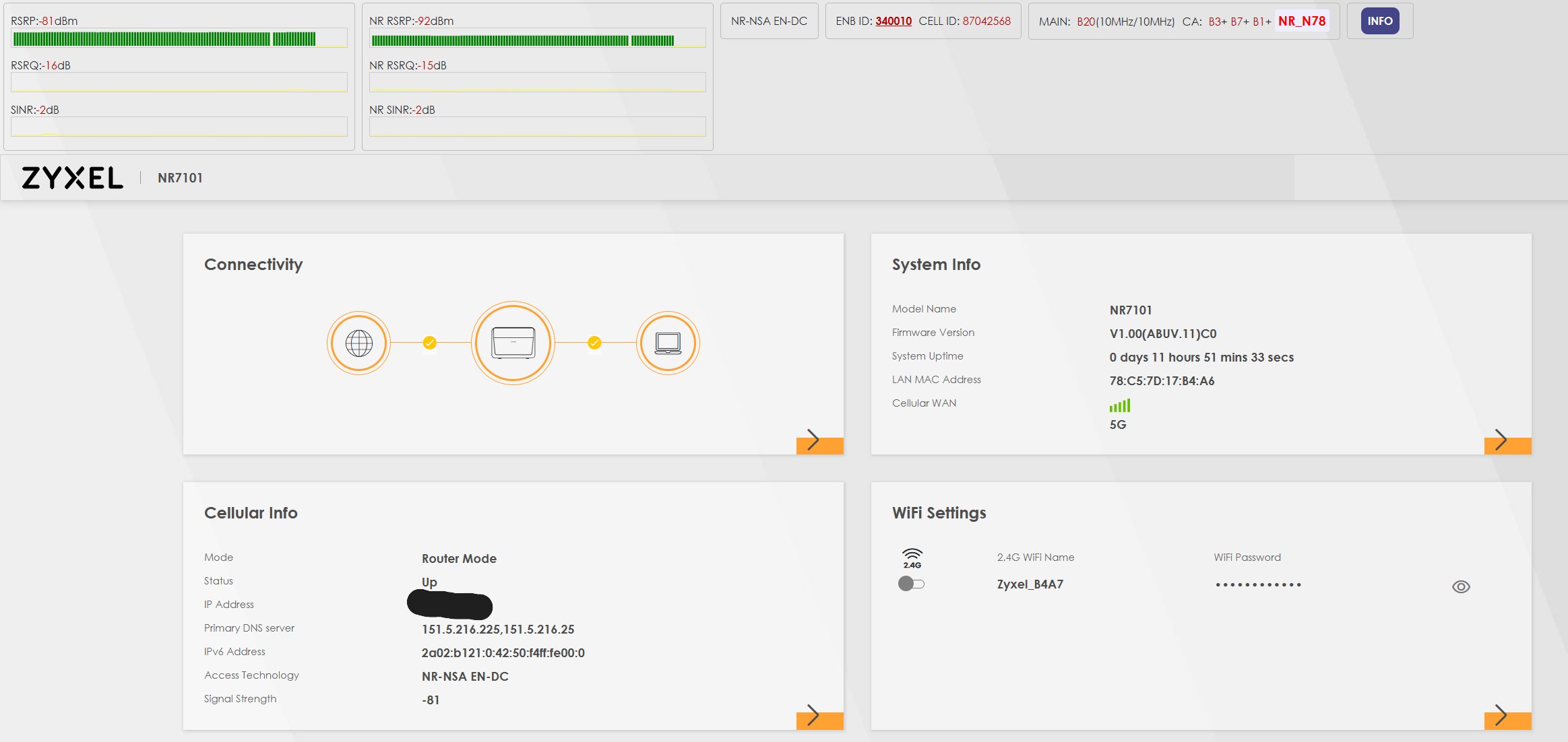 non essendoci soluzioni migliori, internet arriva a casa mia tramite SIM 5G di Alpsim (WindTre) installata all'interno di un router 5G outdoor Zyxel NR7101.