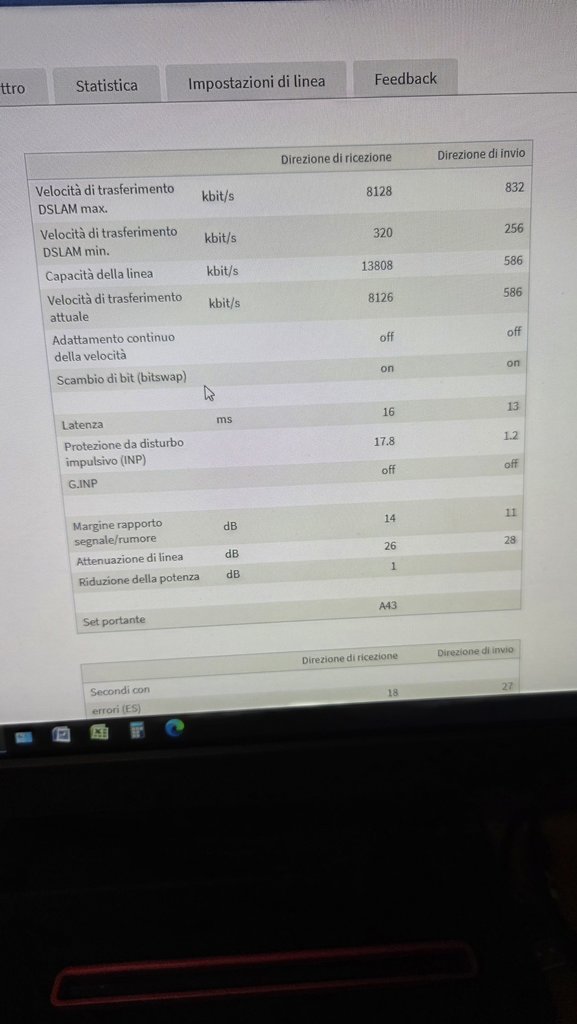 Hadx AlessioDea Viaggi al massimo del profilo 7M attualmente attivo in down, meno in up ma comunque con margine per alzarsi. Se attivi un profilo 20M con SNRm a 6dB guadagnerai un po' (ma magari è il caso di passare anche a qualche tecnologia più evoluta).