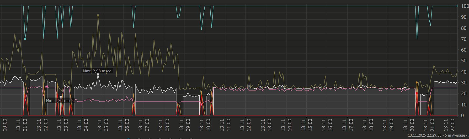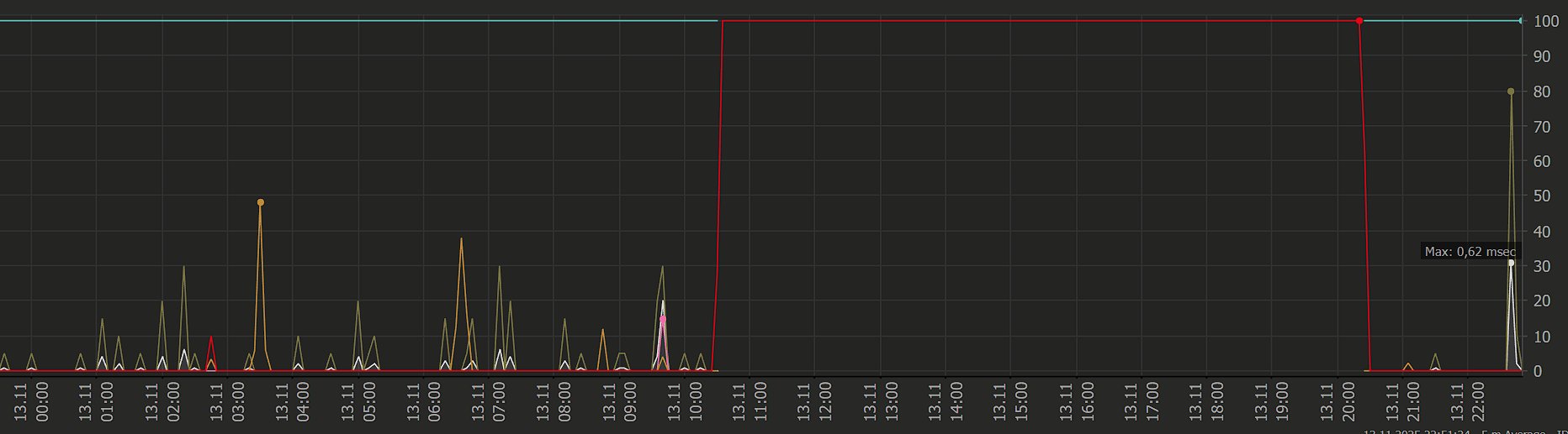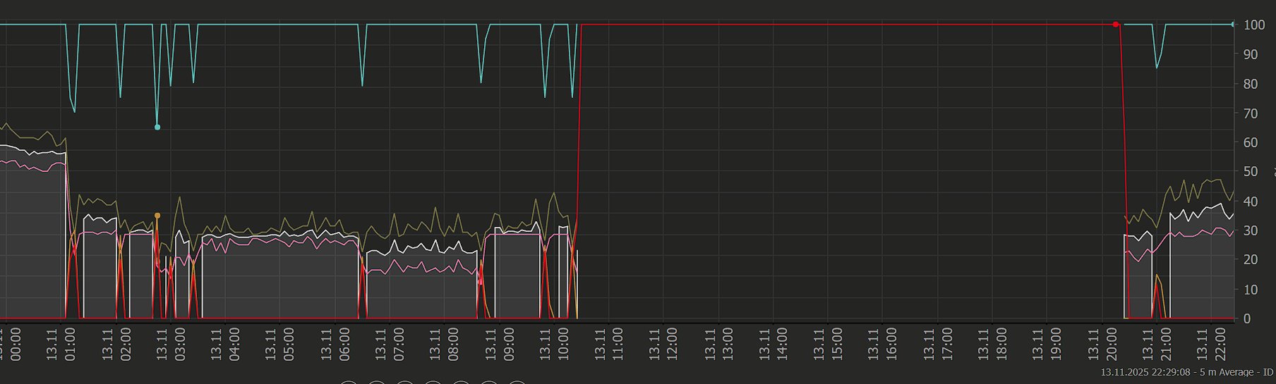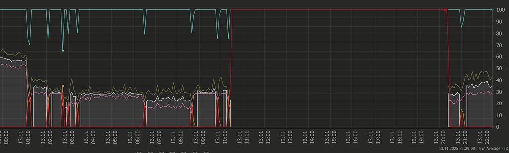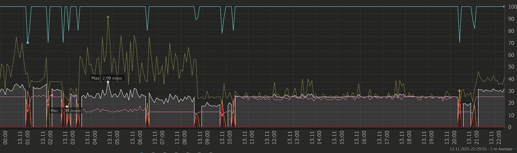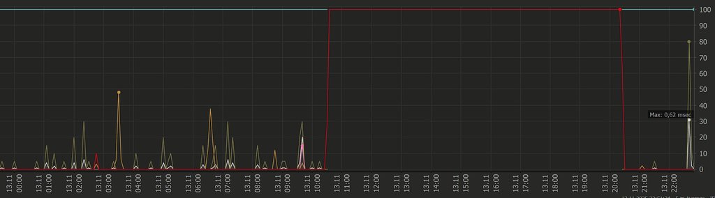 ho diverse "interruzioni" random, ogni tanto lascio aperti dei sensori che puntano al 192.168.1.1 (sagemcom), ogni tanto al DNS TIM1 85.38.28.33, ogni tanto all'1.1.1.1, ogni tanto ad un server netflix... in qualcuno dei momenti in cui non ho connessione devo riavviare il router togliendo corrente perchè non raggiungibile, nella maggior parte dei momenti fa da solo.