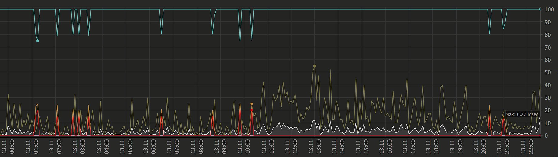 Uptime Stats: Up: 98,976 % [02d 22h 36m 11s] Down: 1,024 % [43m 50s]