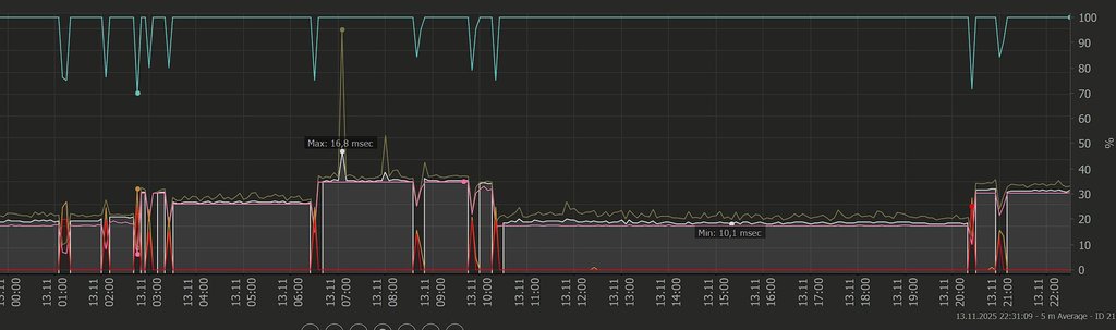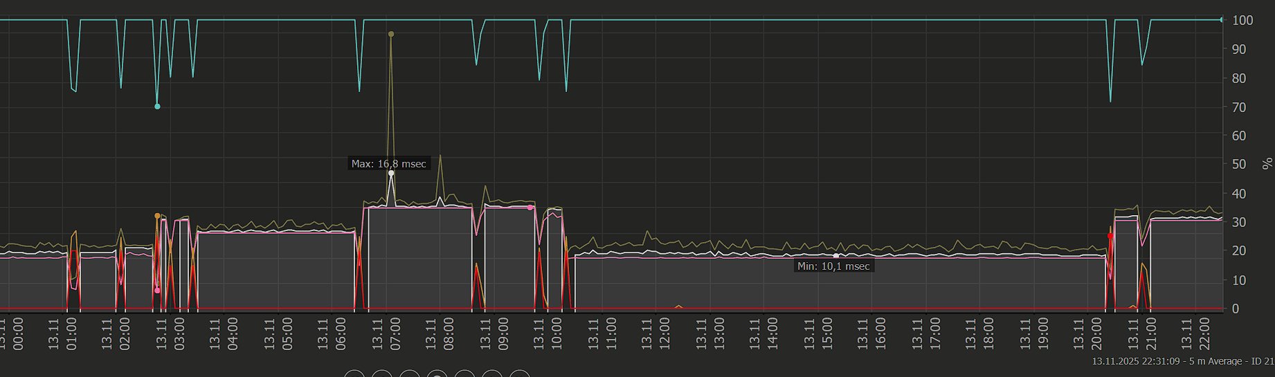 Uptime Stats: Up: 99,173 % [16h 59m 30s] Down: 0,827 % [08m 30s]