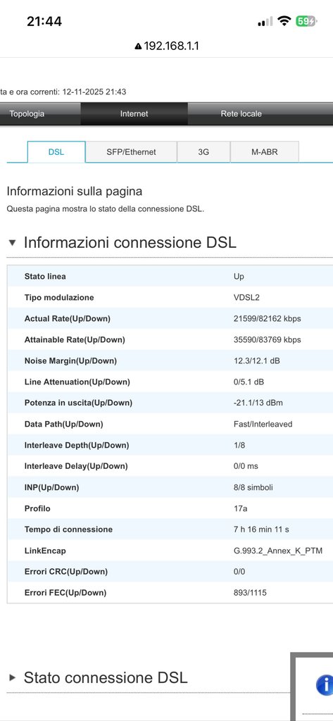 Johnny94 Oggi ho chiamato la Tim ed ho fatto impostare L SNR a 12db in download prima era a 6db. Gioco molto online, ho fatto bene? Com è il profilo della vdsl buono ?
