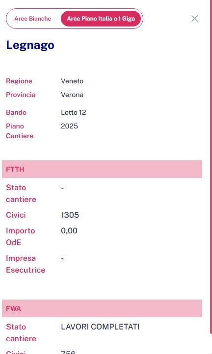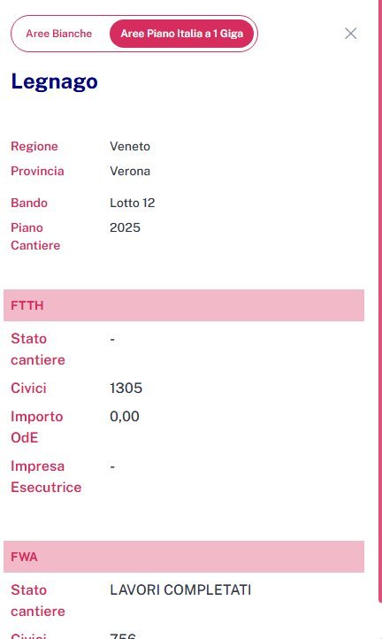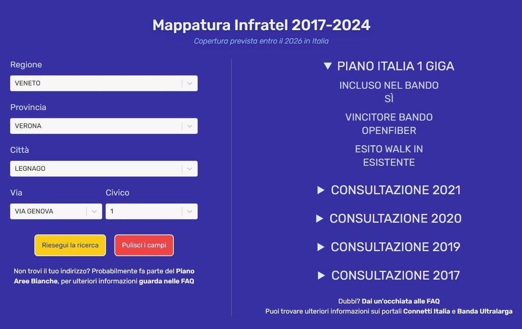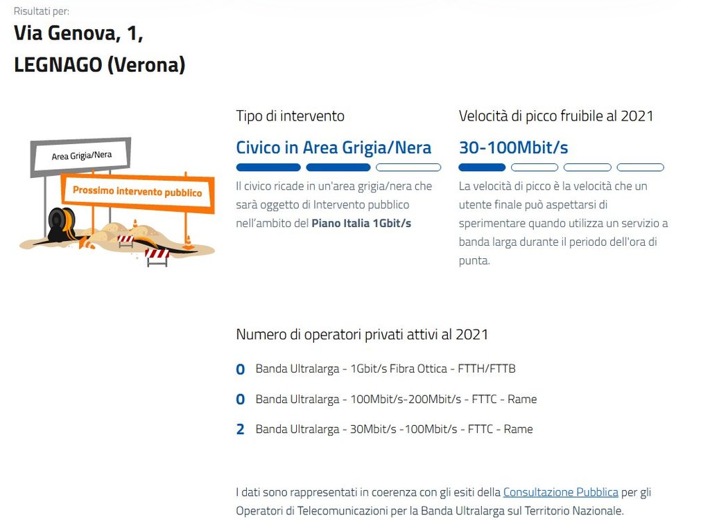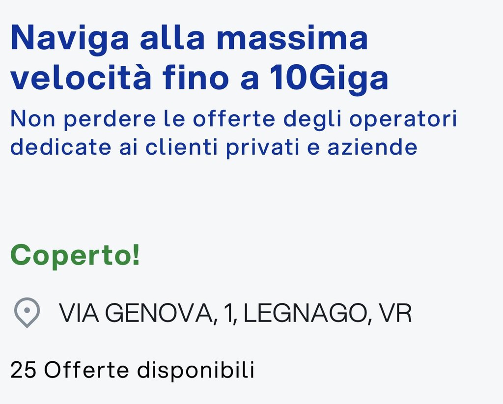 Ho visto che la mia abitazione, Via Genova 1, Legnago (VR), risulta compresa nel Piano Italia a 1 Giga: