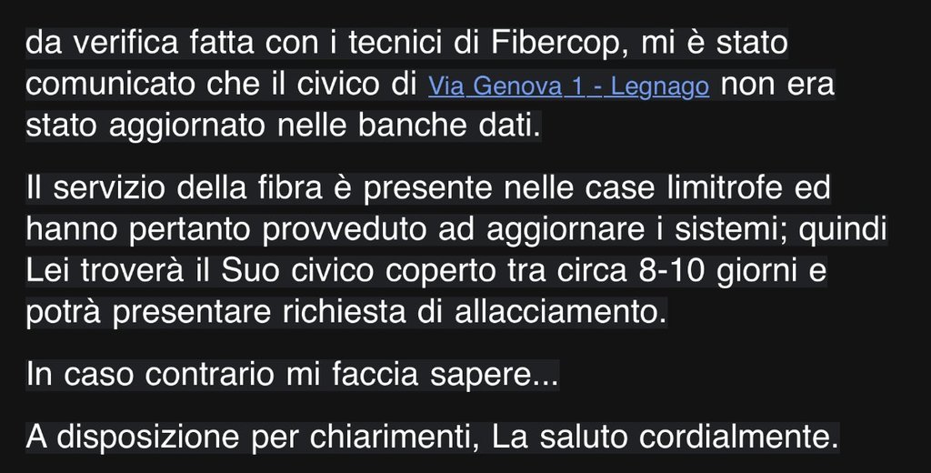 Sul sito BUL il civico risulta in area grigia/nera, come del resto però anche gli altri civici che mi risultano a fianco e di fronte, quindi non so nemmeno a cosa affidarmi:
