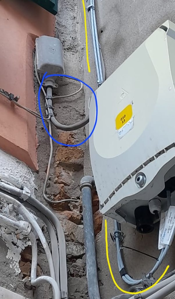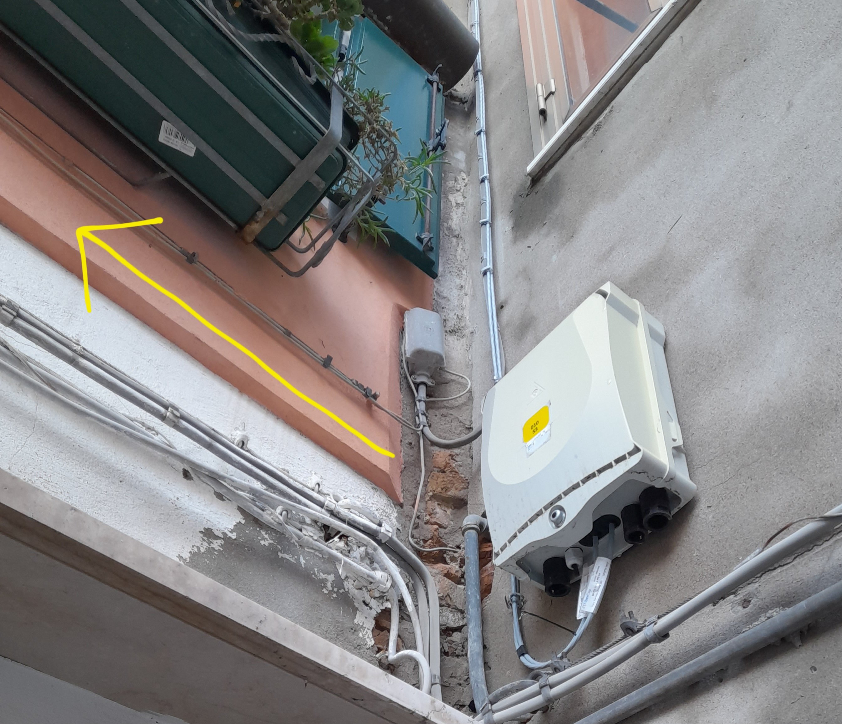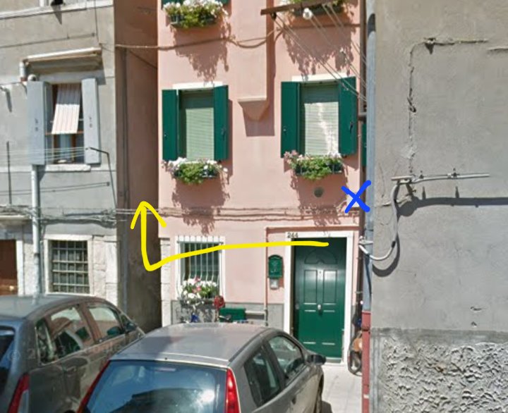 Comunque in generale la situazione è un pò particolare, per chi conosce Chioggia è un pò come Venezia con strade strette, case antiche tipiche da centro storico... quindi praticamente dietro casa ho la chiostrina in foto, immagino che comunque sarà della casa che si vede in foto, però quel cavo che ho indicato con la freccia