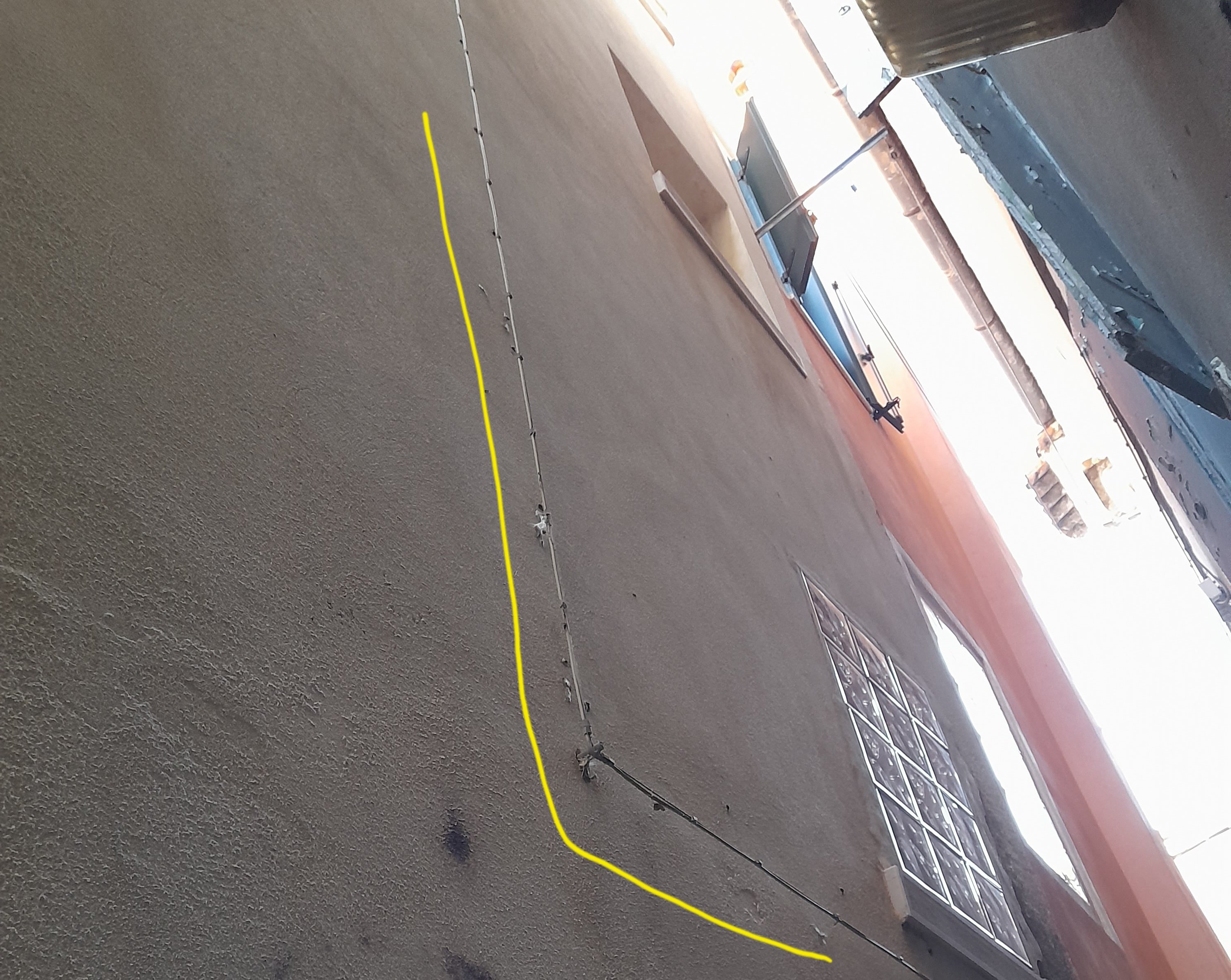 Poi fa angolo col muro della casa, prosegue per tutto il muro e sale come si vede nella linea che ho fatto fino a casa mia
