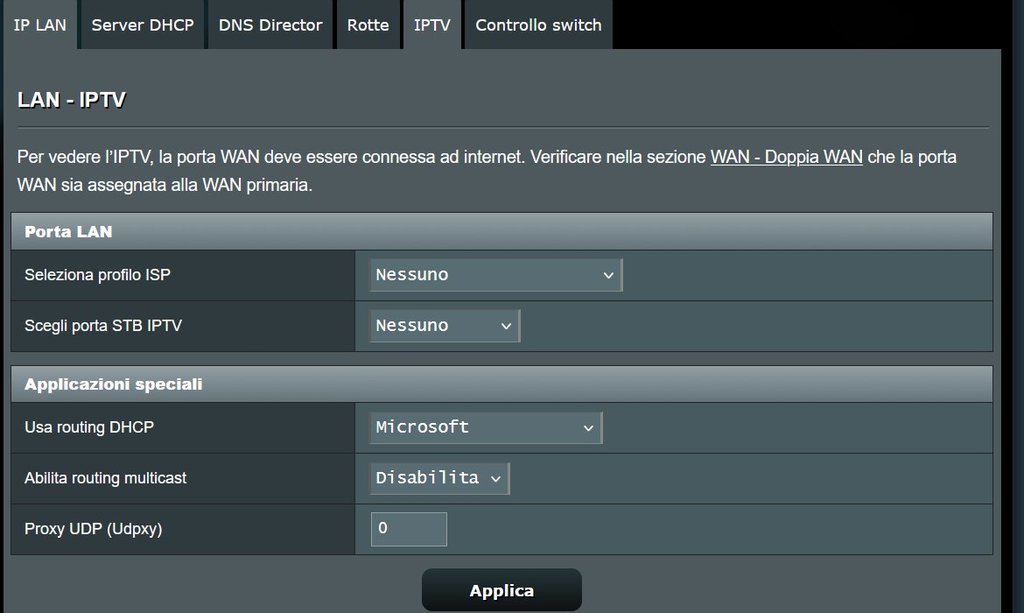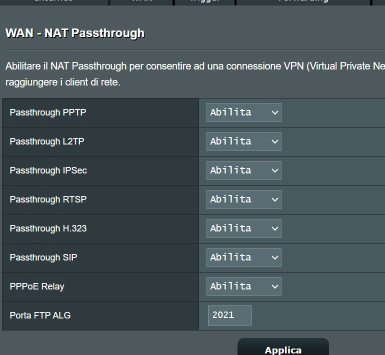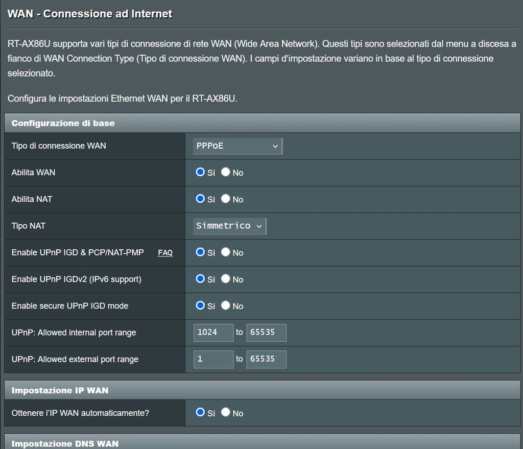 L'unico modo per far funzionare l'ASUS è cambiarlo da PPPoE a Ottieni automaticamente IP, ma in questo caso dovrei essere in doppio NAT. In questo caso, mi è venuto in mente di togliere il NAT dalla connessione VDSL del TIM HUB (l'ho sbloccato con la procedura di ripristino senza aver collegato il doppino).