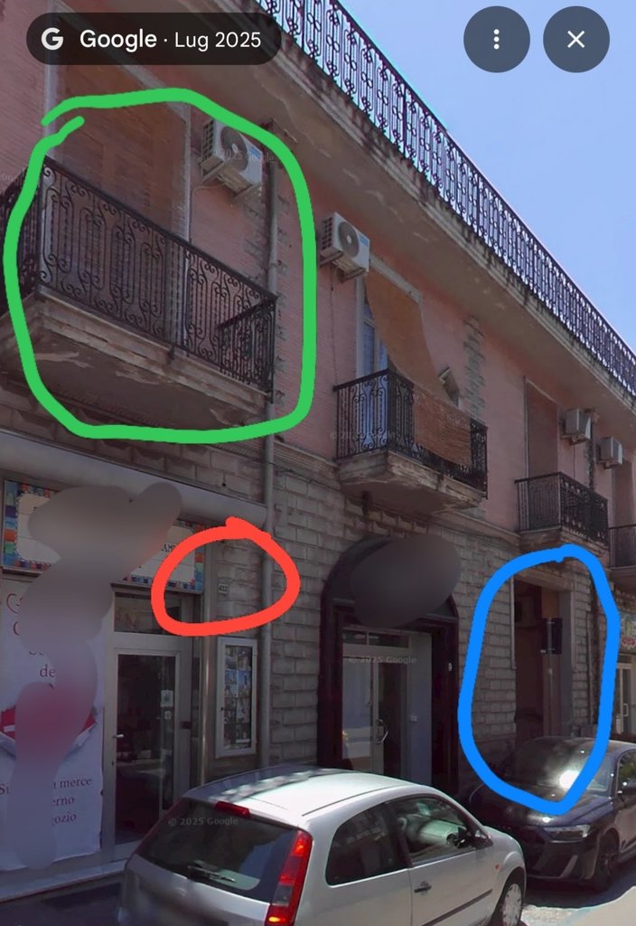Lascio una foto per capire meglio, in verde il balcone di casa mia, in rosso il civico coperto e in blu il portone di casa mia che fa civico 428.