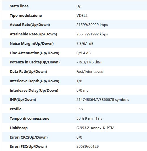 Vi lascio qui sotto lo screen di quello che vedo dal modem.