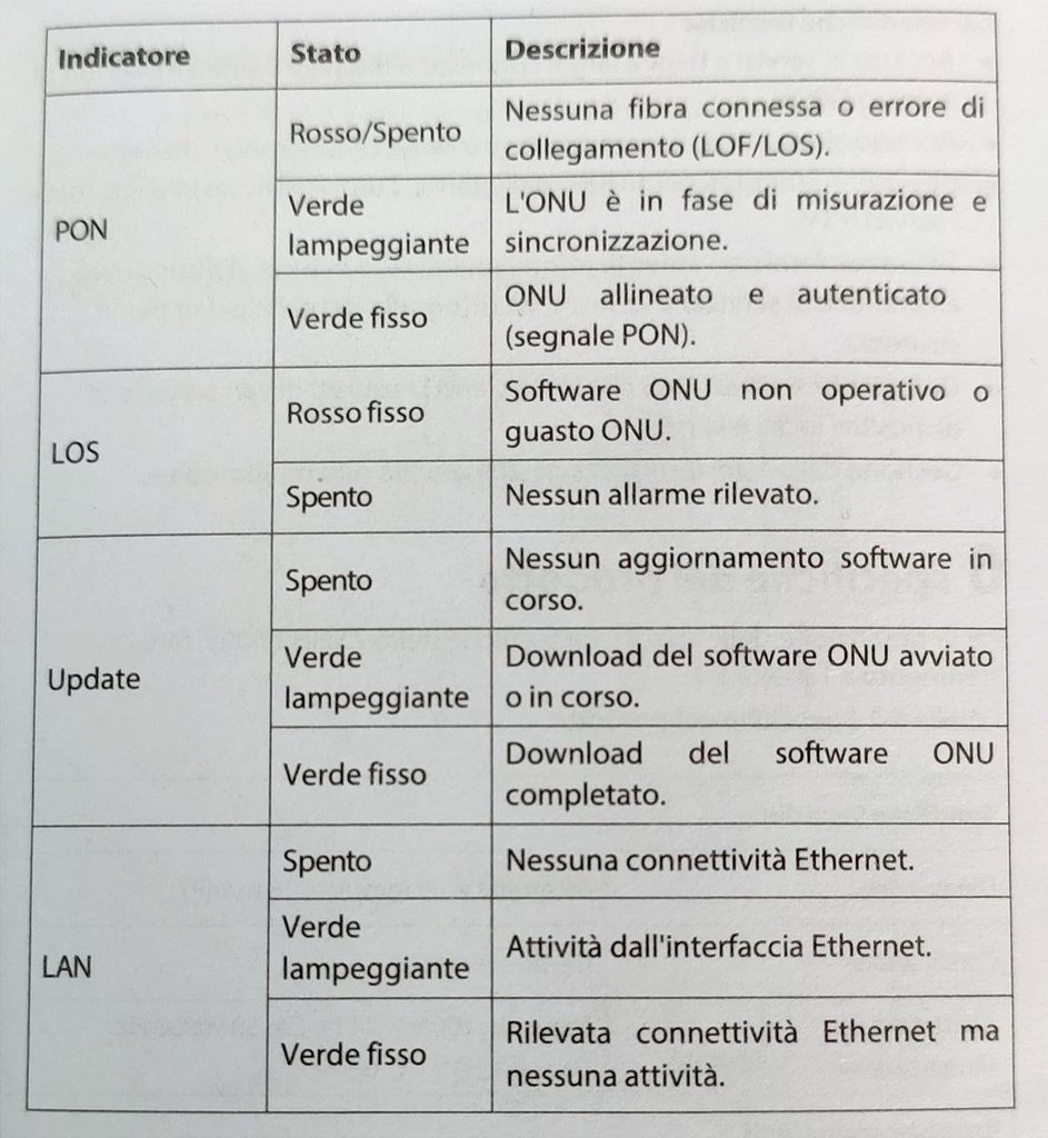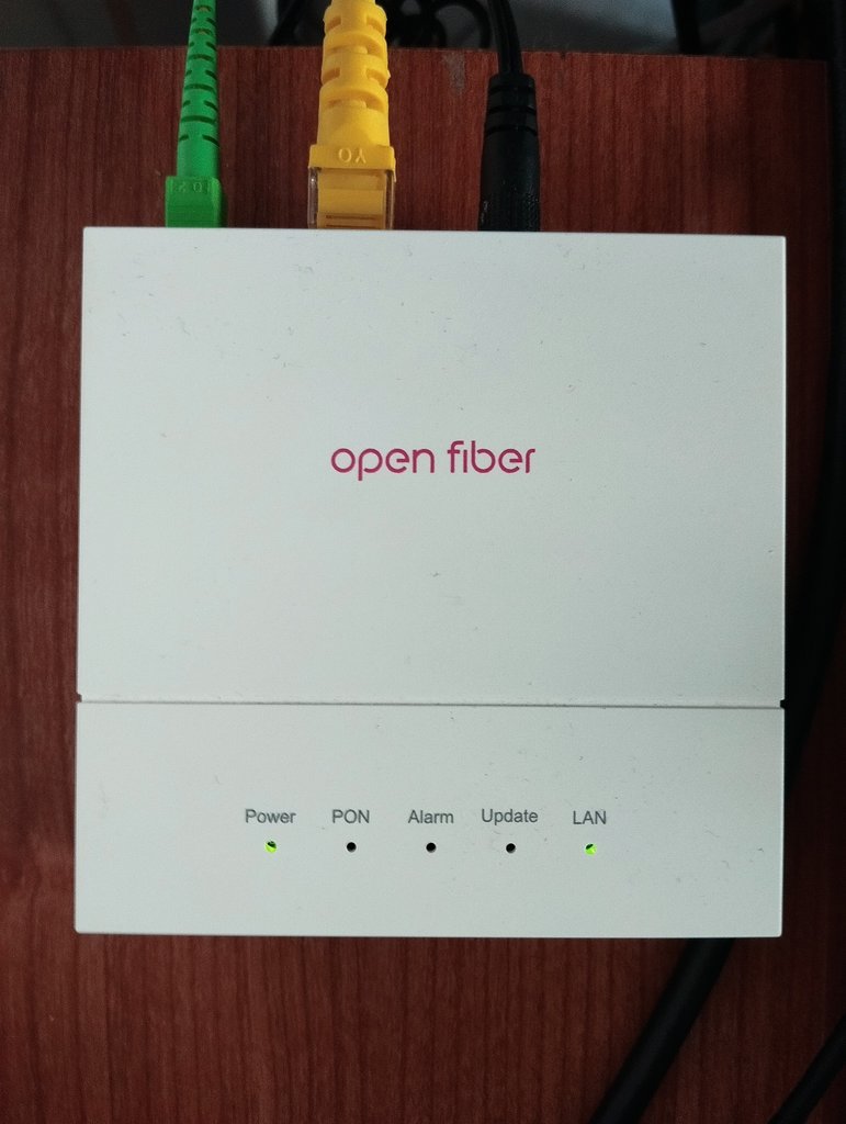 Salve a tutti!! Sono nuovo utente, ma seguo da molto tempo il forum quando mi servivano informazioni relativa all ftth!! Ora avrei bisogno di qualche informazione. Sono 12 ore che mi ritrovo con il led PON spento sull ont openfiber. Ho attivato questa linea ftth 2.5gb con dimensione da aprile 2025 e non ho mai avuto problemi fino ad oggi, poi di punto in bianco oggi verso le 13 si è spento il led PON e non ne ha più voluto sapere di ripartire, ho aspettato un paio d'ore per poi contattare l assistenza di dimensione, e mi hanno detto che a loro non risultano problemi nella mia zona, cosí hanno aperto un ticket e mi è arrivato un sms da openfiber per fissare appuntamento con il tecnico, ora devo solo sperare che si presentino da quello che leggo in giro. Qualcuno ha avuto questo tipo di disservizio?? Quanto tempo ci potrebbe volere per risolvere?? Ho provato a riavviare l ONT piú volte ma sempre con esito negativo, ho il led power verde acceso, poi PON alarm e update spenti e lan acceso verde, da quello che ho capito leggendo in giro si dovrebbe trattare di un interruzione del cavo fibra, sono andato a controllare nel locale contatore dove c è la scatola BUL per vedere se magari si era rovinato qualche cavo ma a primo impatto sembra tutto ok, anche perche l unica utenza in ftth nel palazzo è la mia, quindi non ho nemmeno qualcuno con cui confrontarmi per sapere se anche qualche altro inquilino ha il medesimo problema. Grazie a chi mi saprà dare delle risposte.