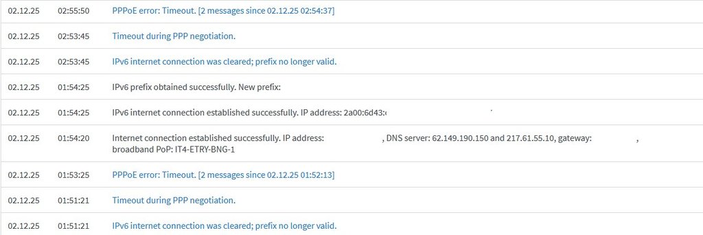 crack3us Confermo sud di Roma connessione PianetaFibra. PPPoE andata giù all’01:51 tornata online pochi minuti fa. Manutenzione o disservizio?