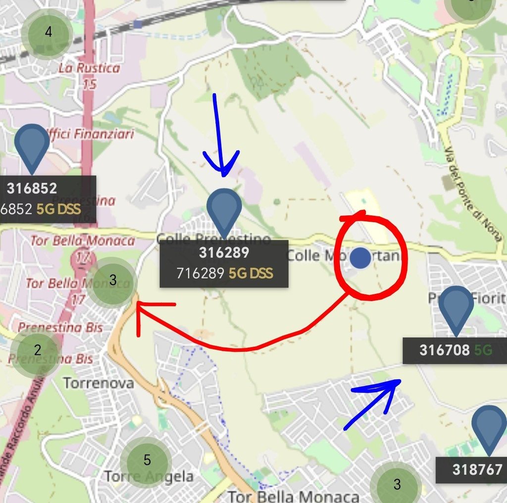 lucamonte stefano_77 Non posso allegare screenshot, ma quello che posso dirti è che l'unica bts con un settore orientato verso dove ti trovi è 316289 (tra l'altro ti punta dritta per dritta, proprio in pieno), le altre due di cui parli hanno i settori orientati altrove. Quindi non vedo niente di anomalo nel tuo agganciare quella.