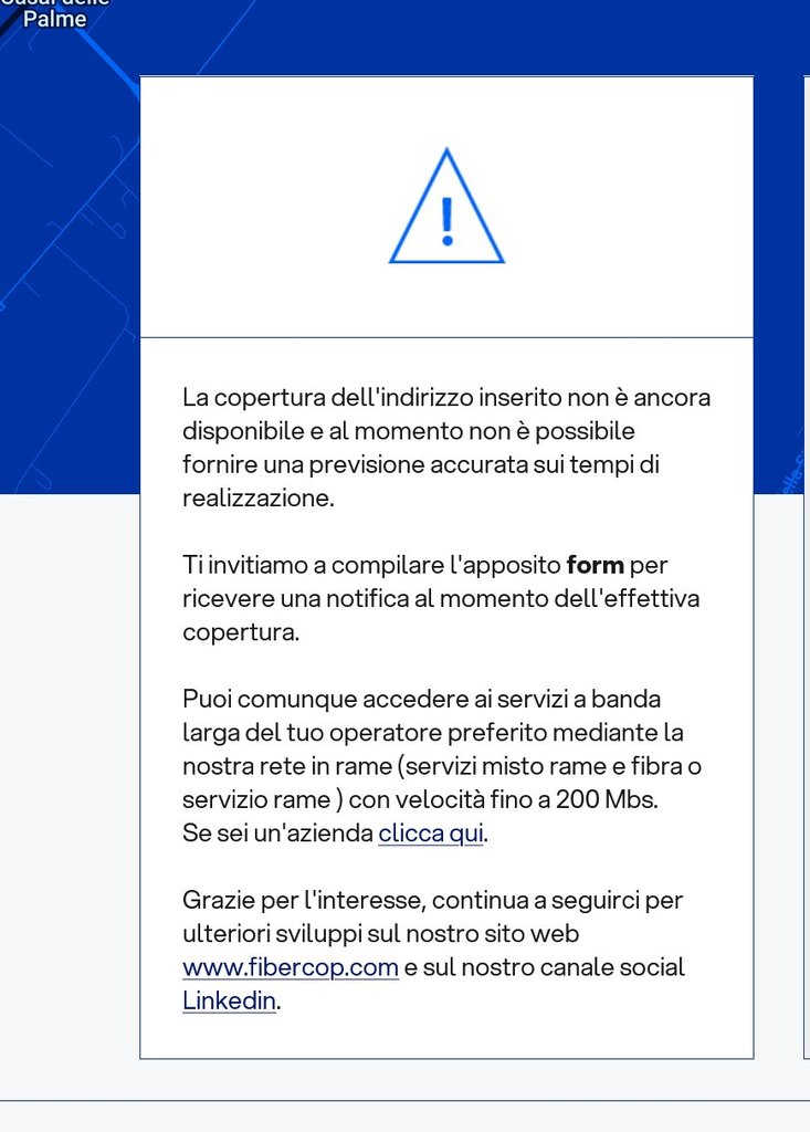 Se mi collego a https://fibra.click/fibercop/ mi viene però detto che l'indirizzo non è coperto da FFTH.