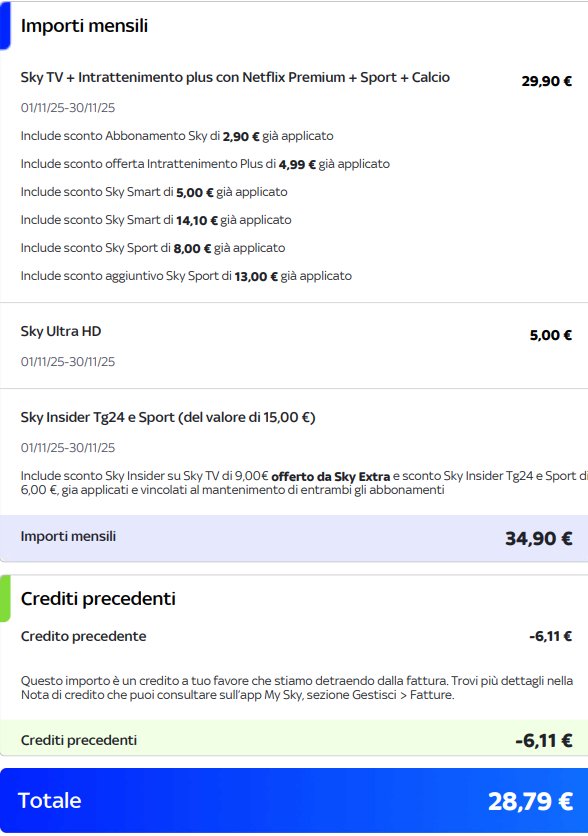 Attualmente ho Sky con Sky Stream con l'attuale configurazione (Compreso netflix in 4k incluso) come da screen che vi allego: