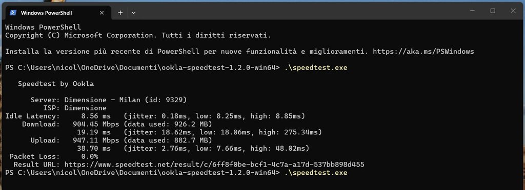 Ho quindi eseguito uno speedtest e purtroppo i risultati confermano che il download è limitato a circa 1 Gb, indipendentemente dall'infrastruttura utilizzata.