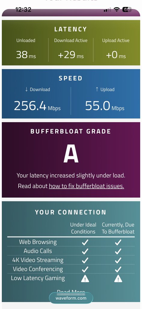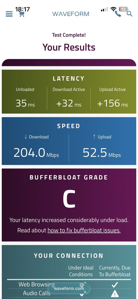 Sono passato da un bufferbloat con grado A a uno di grado C. Colgo l’occasione per dire, con il massimo rispetto verso chi sostiene che il bufferbloat o il jitter in upload non rovinino l’esperienza di gioco, che almeno nella mia esperienza personale non è affatto così: nel momento in cui è cambiato il bufferbloat, è cambiato tutto, letteralmente dal giorno alla notte.
