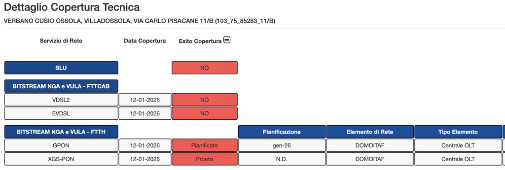 Ciao, come ha indicato @TheMarsican l'indirizzo, anzi, tutta la zona, è in stato pianificato con previsione di abilitazione per gennaio 2026.