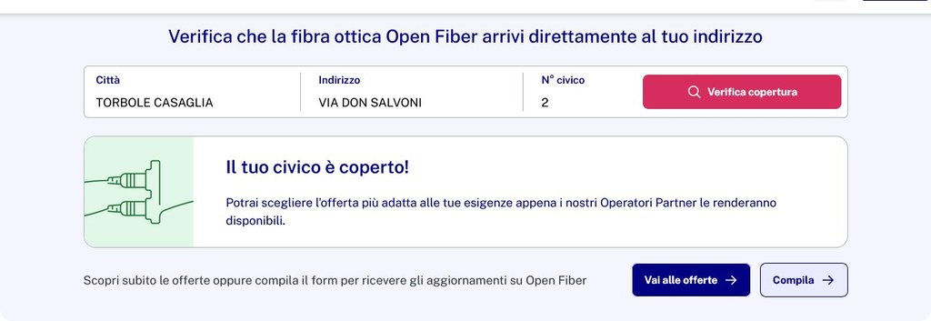 Invece, inserendo il tuo reale indirizzo (che sappiamo non coperto) si ottiene