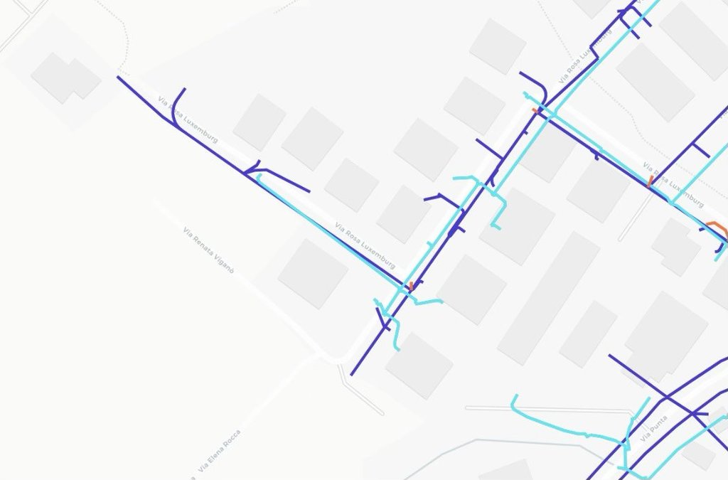 Nella via sono inoltre presenti due tombini TIM e un cabinet InRete.