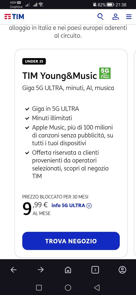 • TIM si impegna a non effettuare modifiche unilaterali al prezzo mensile dell’offerta Young & Music per un periodo di 30 mesi decorrenti dalla data di attivazione.