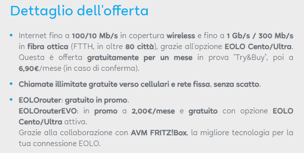 Quindi il routerEVO (Fritz 7530) è gratuito se tieni attiva l'opzione 100/10 pagando questi 6.90 euro in più al mese. Almeno io la interpreto così. Ne deduco quindi che il prezzo finale per la 100/10 è di 36.8