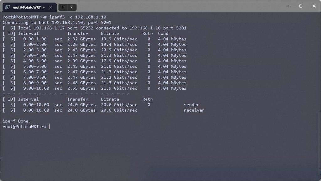 Questo è un test che ho fatto tra due schede ethernet virtuali di due VM sullo stesso computer, quindi che sfruttano la stessa CPU (un dual core i5 4170), nonostante sia un PC di fascia bassa del 2014 supera tranquillamente i 20Gbps.