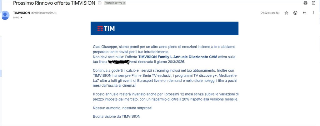 Buongiorno, volevo chiedere se qualcuno ha attivato l'offerta annuale Tim Vision Family un anno fa come me.