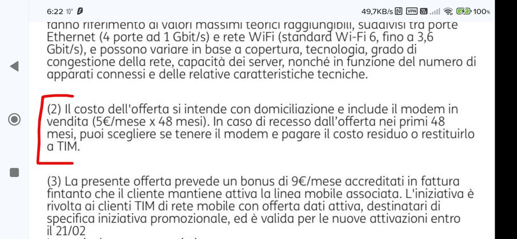 Quindi avresti da restituire 240 euro di Router spalmate in 48 rate, che per te si traduce in 4 anni di vincolo temporale con Tim, durante i quali ti prenderesti tutte le rimodulazioni che Tim effettua con cadenza periodica e Costante, in più hai 39.90 di anticipo Attivazione + altre 24 rate da 5 euro per 24 mesi (120 euro totali) sempre relative alla voce attivazione.