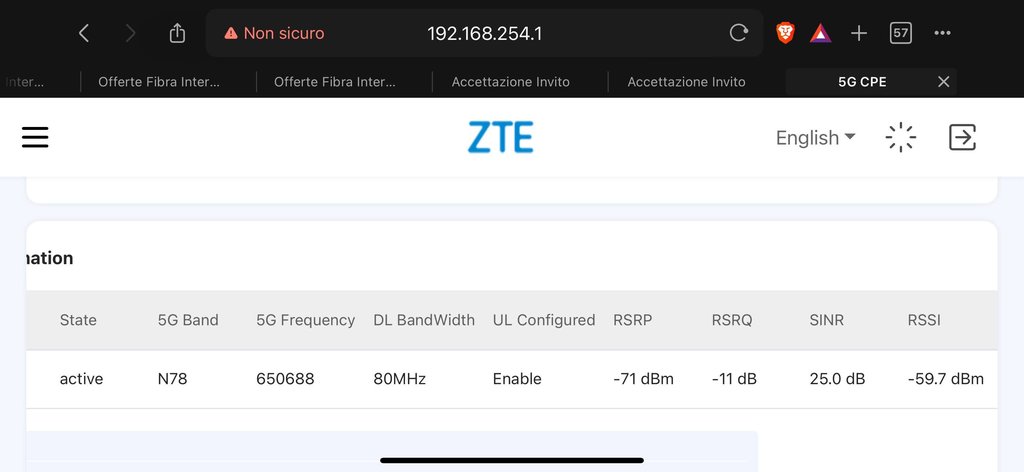 Buongiorno, sto riscontrando un problema con la mia antenna 5g Zte 889a pro con sim Tim.