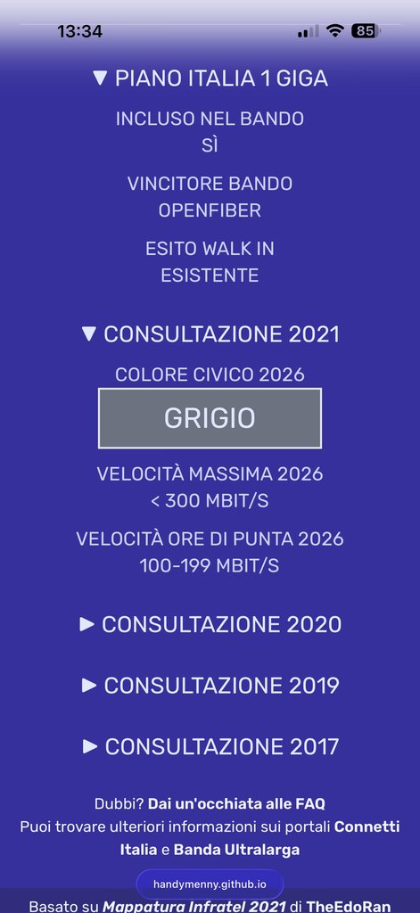 Mi sono recentemente trasferito in una nuova abitazione, vicino ai miei genitori, e per motivi di lavoro ho necessità di una connessione internet molto veloce. Nella mia precedente casa disponevo di una connessione in fibra FTTH fino a 2,5 Gbps e vorrei sapere se anche il mio nuovo indirizzo è coperto