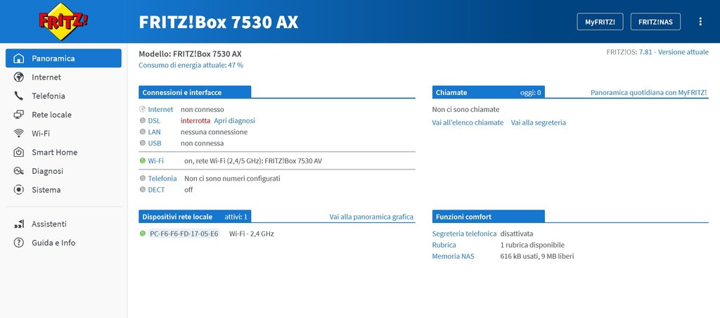 Bene, collego immediatamente il Fritz!Box 7530 Dimensione con molto ottimismo: