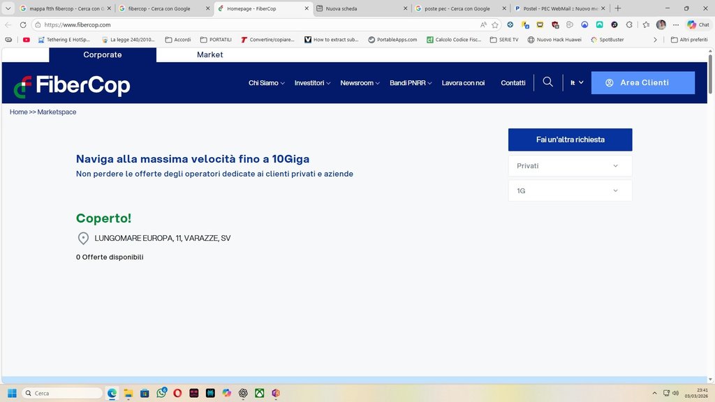 Portale FiberCop: “Coperto”, ma con “0 offerte disponibili”