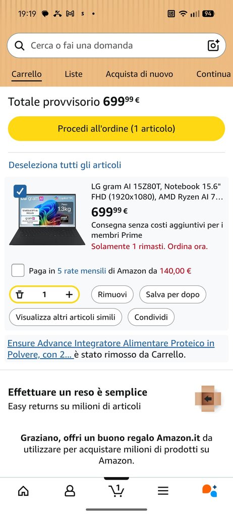 L'ho messo nel carrello ora alle 19.20 ed è disponibile