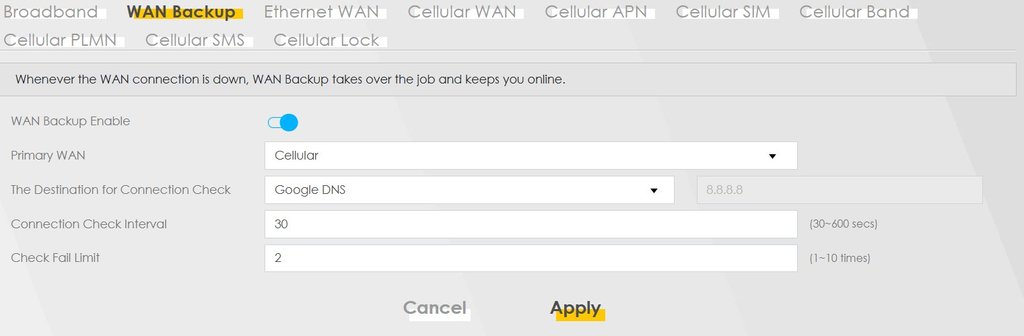 Inizialmente ho configurato il modem affinchè tenesse fissa la connesione via wan (ovvero quella presa dalla mc7010) e di usare la rete 4g solo per necessità. (failover)