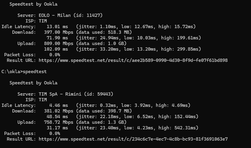 Buonasera, rete 2,5Gb/s attiva da ieri, i valori sono ottimi e la disponibilità di banda è piena, con il cavo raggiungo 1Gb/s che è il massimo della mia scheda di rete e questo lo so.