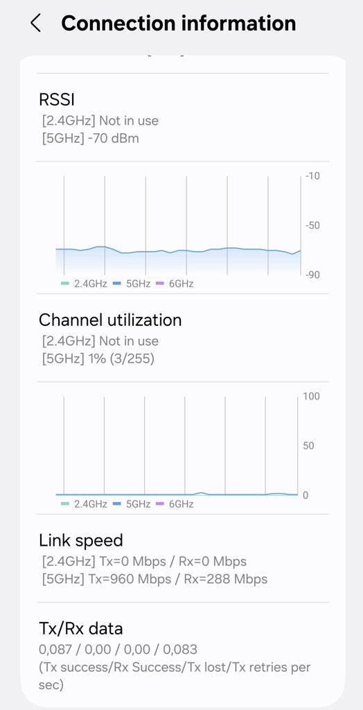 Questa la schermata che rilevo in connectivity labs con lo zflip7 che ha wifi7
