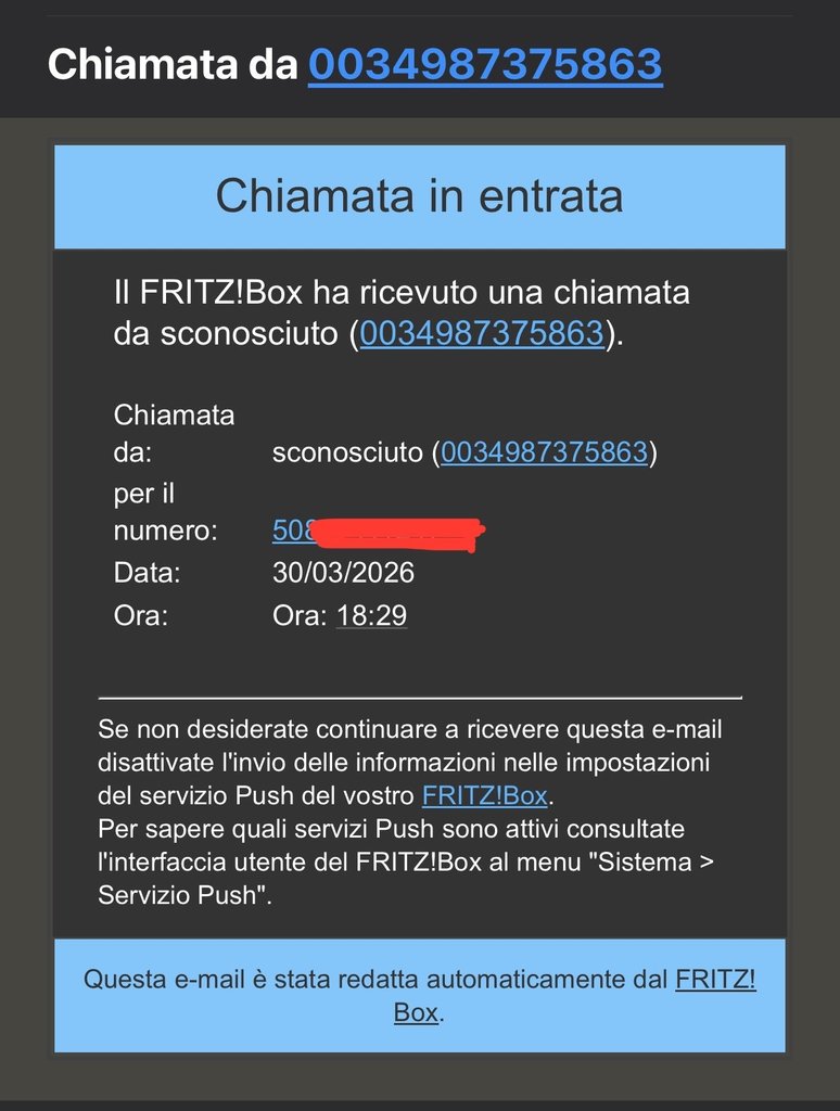 Idem il servizio push per le chiamate ricevute da entrambi i numeri voip registrati