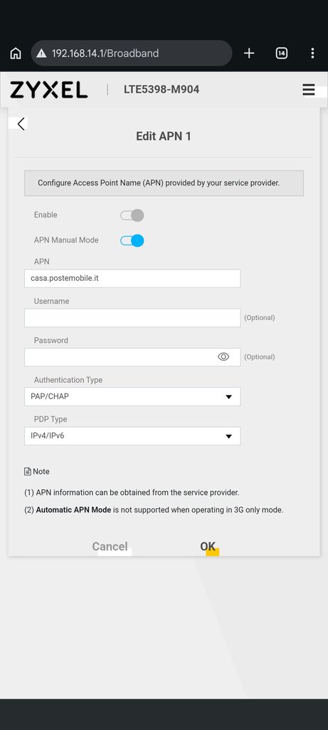 Ho pensato a problemi apn , visto che è manuale , per il cambiamento rete di poste