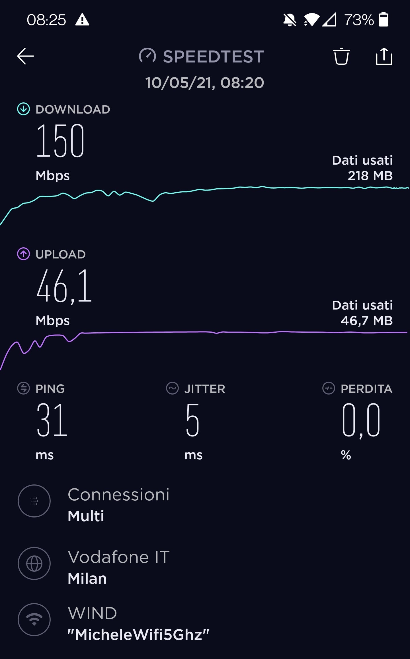 spywork AlexHo Come dice @Rovitz sicuramente la tua antenna è molto trafficata e quindi c'è poca banda per tutti. Io abito in campagna. Comunque ogni situazione è a se, non puoi confrontare la mia connessione e la tua quando si tratta di 4g purtroppo, ci sono tante incognite con questo tipo di connessione radio.