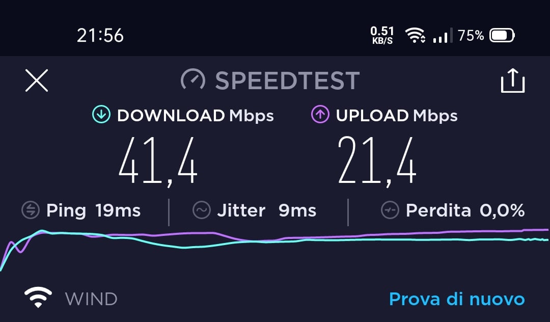 Oggi ping molto bassi: sotto i 30 su wind, sotto i 50 quando su fastweb.